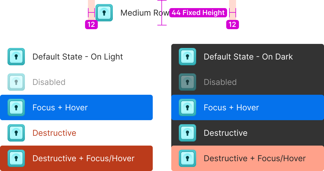 Medium rows are the default when the primary input is touch based. They can also be used for when you want to display a larger set of icons like in the Account/Collection menu.