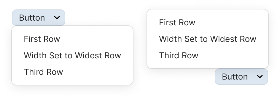 By default – Display directly below the triggering button with no space between.If menu height extends beyond the bottom of the parent container, and there’s room to display above – Display directly above the triggering button/field, with no space between.
