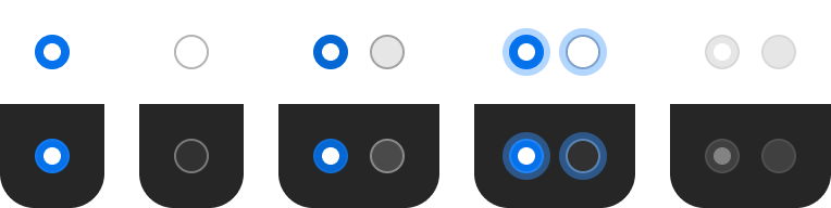 The background gets Shading / On Light / Faint added on top of the background color. The thumb gets Tints / On Light / Blue added on top. Same coloring changes for both themes.